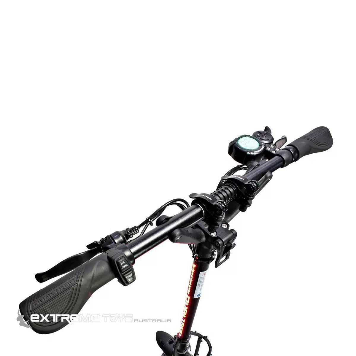 It comes equipped with Dualtron’s famous EY3 Throttle with Cruise Control, Mileage, Voltage, Auto Shut-Off, Eco-Drive, Dual Drive, Turbo Drive, Adjustable Motor Power Delivery, Adjustable Electric Brake Force, On and Off ABS Safety Breaking Feature with regen.