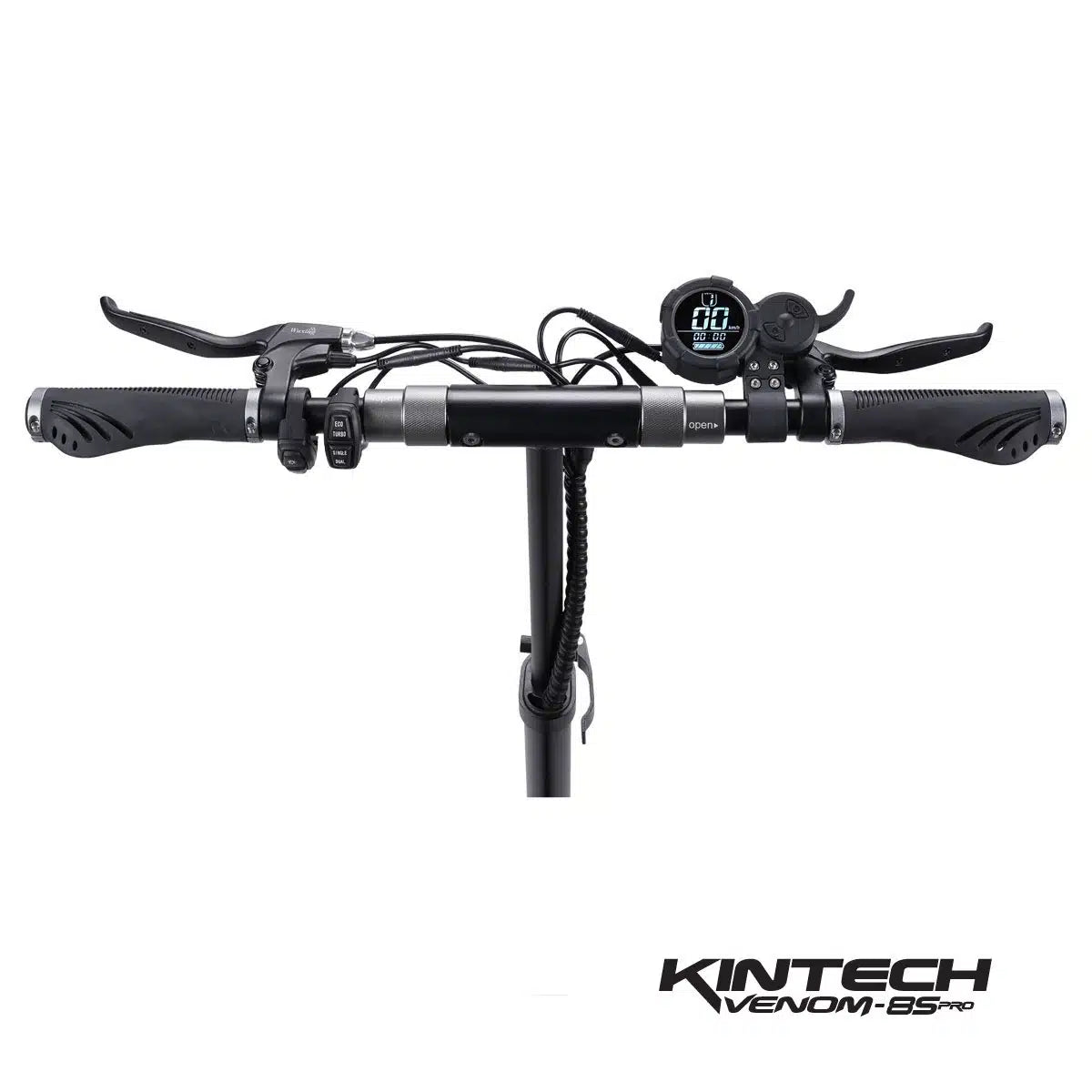 Wide, foldable handlebars give great steering control and the programable LCD trigger throttle combined with the twin 23A sine wave controllers have smooth yet aggressive modulation.
