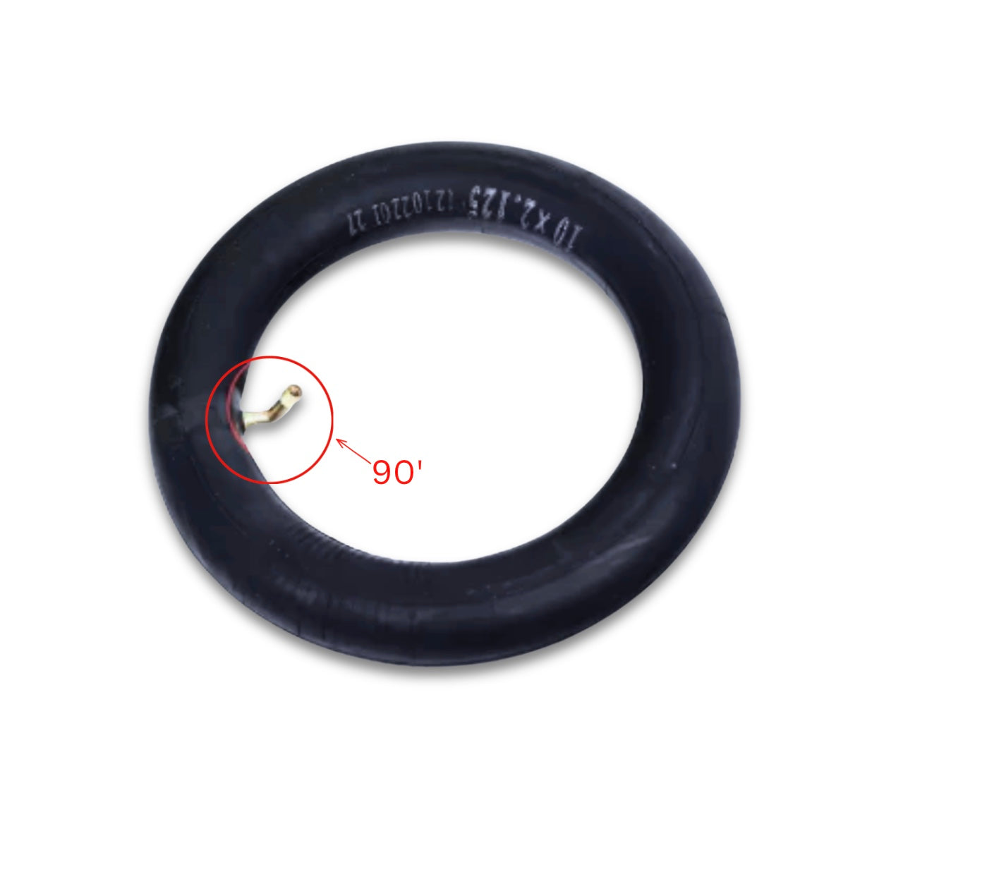 Durable and reliable inner tube fitting tyre sizes from 10x2 up to 10x3. Features a 90° bent valve for easy inflation in tight spaces, perfect for electric scooters, e-bikes, and other mobility devices.